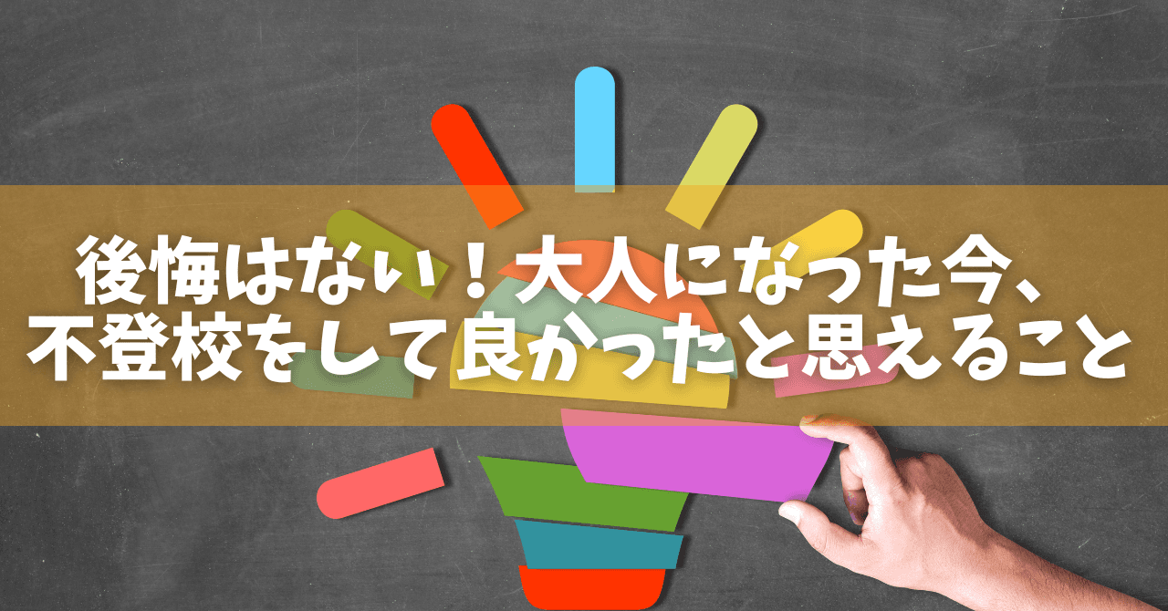 流れに身を任せず、自分の姿勢を貫けるようになったのは最大の利益です。 今回は、大人になった今、不登校をして良かったと思えることをご紹介いたします。