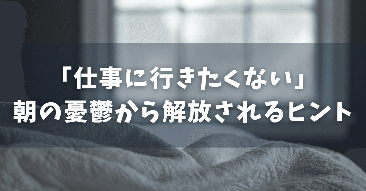 今回は、「仕事に行きたくない」理由を考え、朝の憂鬱から解放されるヒントを紹介します。