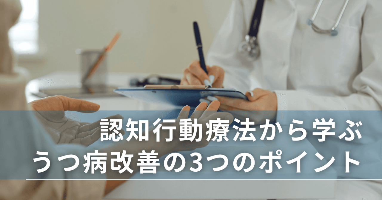 うつ病は、抑うつ気分と意欲の減退という2つの大きな症状によって構成されています。これらをどうマネージメントしていくかが、うつ病の改善にはポイントとなります。今回は、認知行動療法を元に3つのポイントを紹介します。