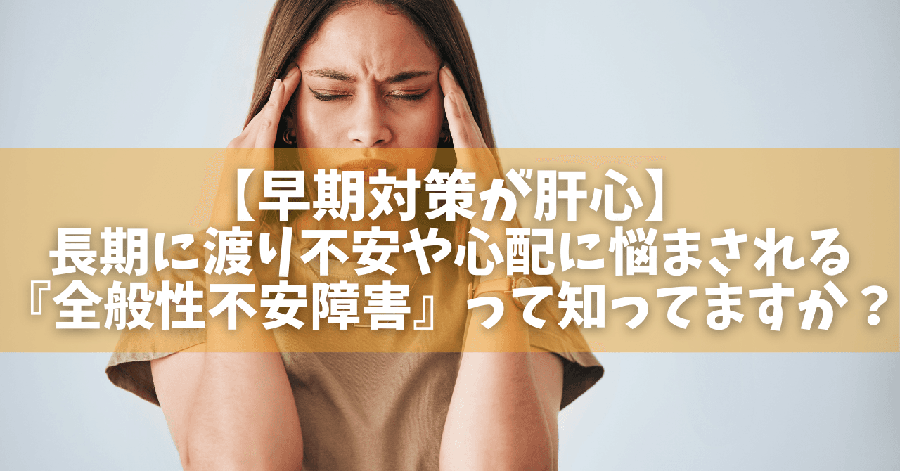 以上のような症状や、コントロールできない不安・心配が6ヶ月以上続いていたり、心配や不安がない日のほうが少ない、という場合に、「全般性不安障害」という診断が下されます。
