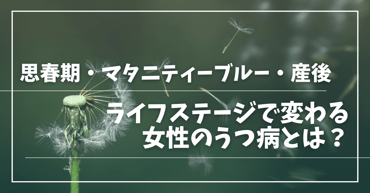 女性は初潮を迎えた時から閉経するまで女性という特性の制約を受けているものです。子供を産むという役割から、さまざまな制約を背負わなければなりません。初潮を経験し、女性の役割になじめないなかで思春期のうつを体験し、出産と言うドラマチックな体験を経て、はじめての授乳とか子育てに適応しきれないと、産後のうつ病を発病させます。更年期に入れば、閉経という女性というなじんだ肉体の変調に、また悩まされます。
