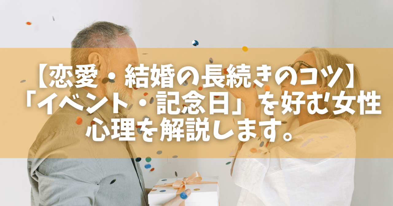 ここでは「イベント」のカップルへの心理効果や、男女の記念日に対する意識の違い、パートナーに対する注意点等を紹介していきます。