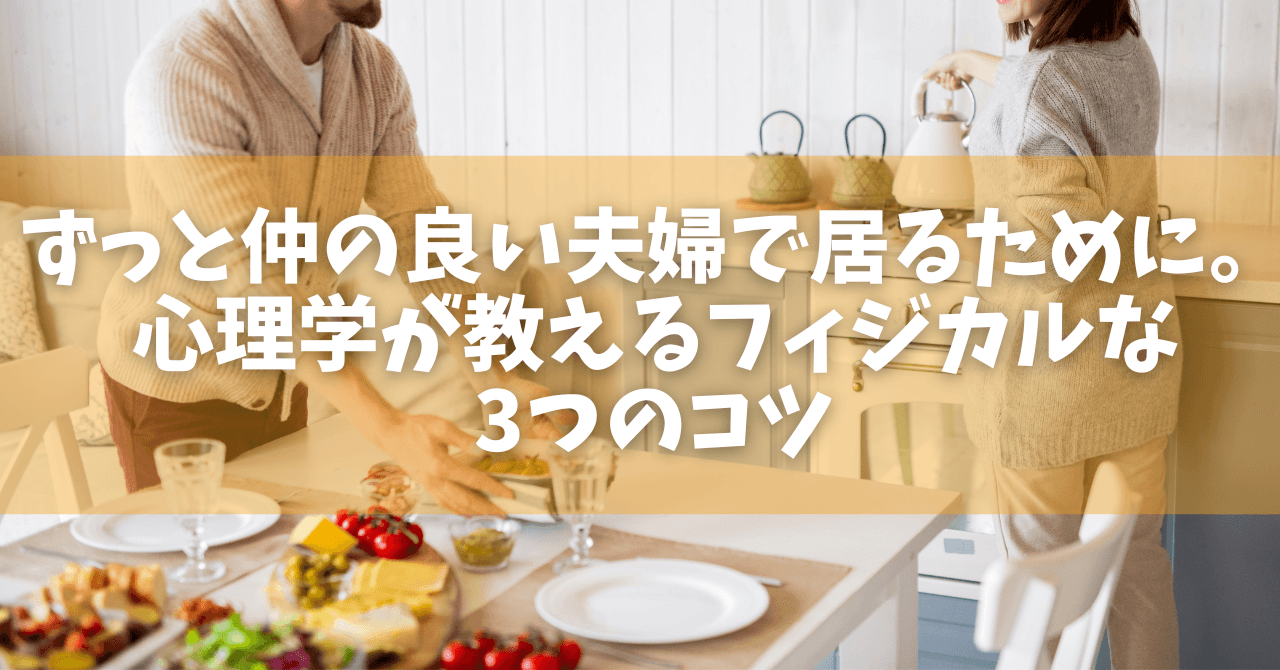 病めるときも健やかなる時も一緒にいることを誓った夫婦関係ですが、夫婦関係を良好に保つコツは、実は「健やかなる時」(良い環境)をより意識的に作ることなんです。