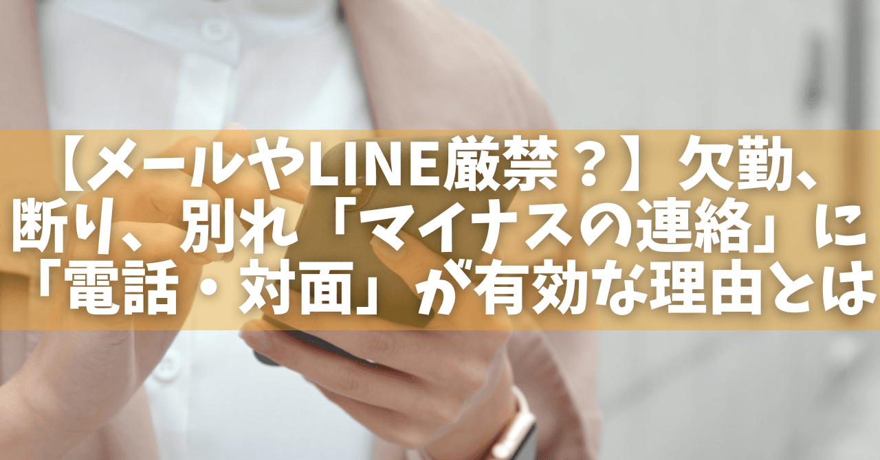 プライベートシーンではもちろん、仕事上の欠勤・遅刻やミスなどの連絡についても「メールやLINEで済ませる」という人が増えてきているようです。ところが、例えば誘いについての断りや、欠勤・遅刻などの連絡、さらには恋人同士の別れを告げる時などの「マイナスの連絡事項」については、このような「メール・SNSでの連絡」は避けた方が良いことも。