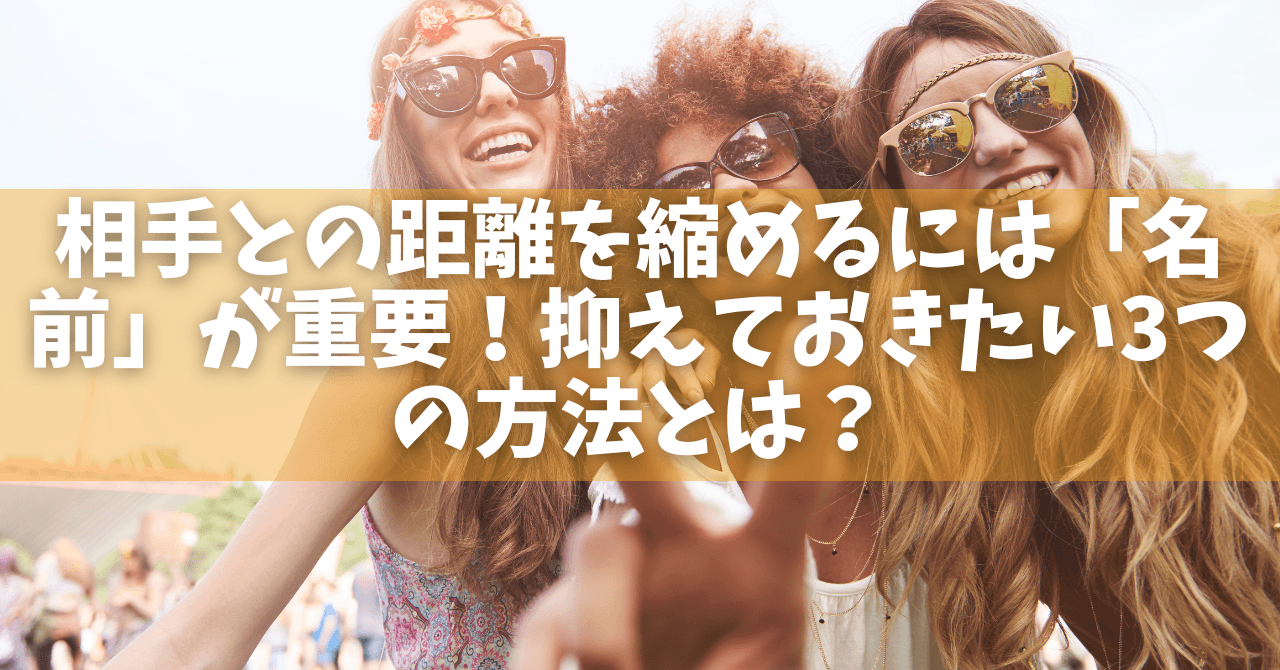 なお、一文の中に何度も繰り返して名前を入れる、1分間の中で何回も名前が入る等の「くどすぎる」表現は却って相手の警戒心を高めてしまうことも。 「名前を呼ぼう!」とあまり肩に力を入れず、自然に会話の中に織り込んでいくようにしましょう。
