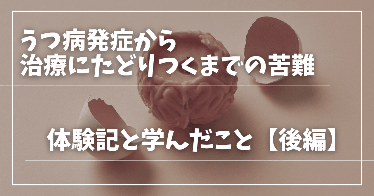 うつ病は一進一退を繰り返し心身ともに消耗する病気ですし、特効薬が無いのが現状だと思います。同じ病気と言えど苦しみは十人十色で、私の体験と完全に重なる方は多くは無いと思います。しかし、まず言えることとして、重症化している時は、休息と投薬により心身を落ち着かせることが大切だということですね。辛いですが焦る気持ちをグッとこらえる。また、個人的な感想としてある程度症状が良くなってからは、主治医やカウンセラーに頼りすぎないように意識し、生活リズムを整えるための運動をしたり、自分に出来ることはないのか勉強したり、主体的にうつ病の治療と向き合っていく必要があると思います。私自身もそうだったのですが、主治医やカウンセラーに寄り掛かることはとても楽で、そのまま任せていれば良くなる、という考えがありました。しかし、うつ病を良くしていく決め手は自分の意志なんだと感じています。重症化している時には難しいですが、良くなってきた感覚を持ち始めたら、少しずつ自分なりに行動をしていくことはとても重要ではないでしょうか。