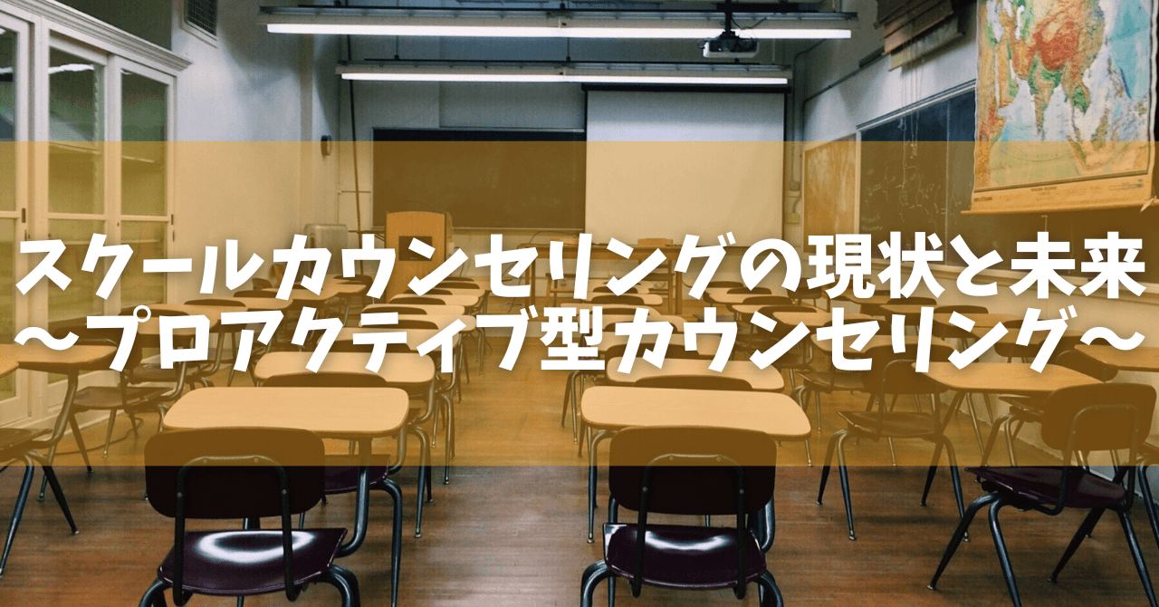 スクールカウンセリングには、リアクティブ型カウンセリングとプロアクティブ型カウンセリングがあります。前者は、不定期な遅刻・早退・欠席が目立ちはじめる、不登校やいじめの初期段階など学校の内外で苦戦し始めた一部の子どもを対象に、問題の早期解決を図る。あるいは、いじめ・暴力行為・不登校・非行など、深刻な問題を抱えた特定の子どもを対象に問題解決を図る。いずれも問題行動に対する事後対応的カウンセリングです。これは、「治す」(リアクティブ型)カウンセリングといえます。