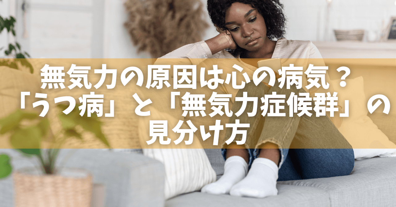 うつ病の症状のひとつにも、無気力・意欲の大きな低下が上げられます。 無気力症候群の違いとしては、「自己否定の強さ」そして「身体症状」が挙げられるでしょう。