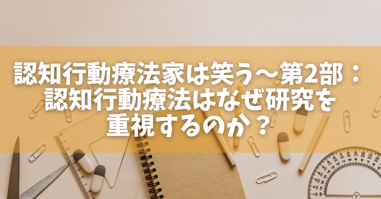 認知行動療法家と力動的精神分析家の特別対談、第1部では、「説明モデル(入口)」と「自立概念(出口)」の違いを参照しながら、ヒーリングと認知行動療法は何が違うのか?という点について考察を深めていきました。第2部では、認知行動療法における「研究」の意義を考察しながら、認知行動療法(CBT)の持つ世界観に迫っていきます。
